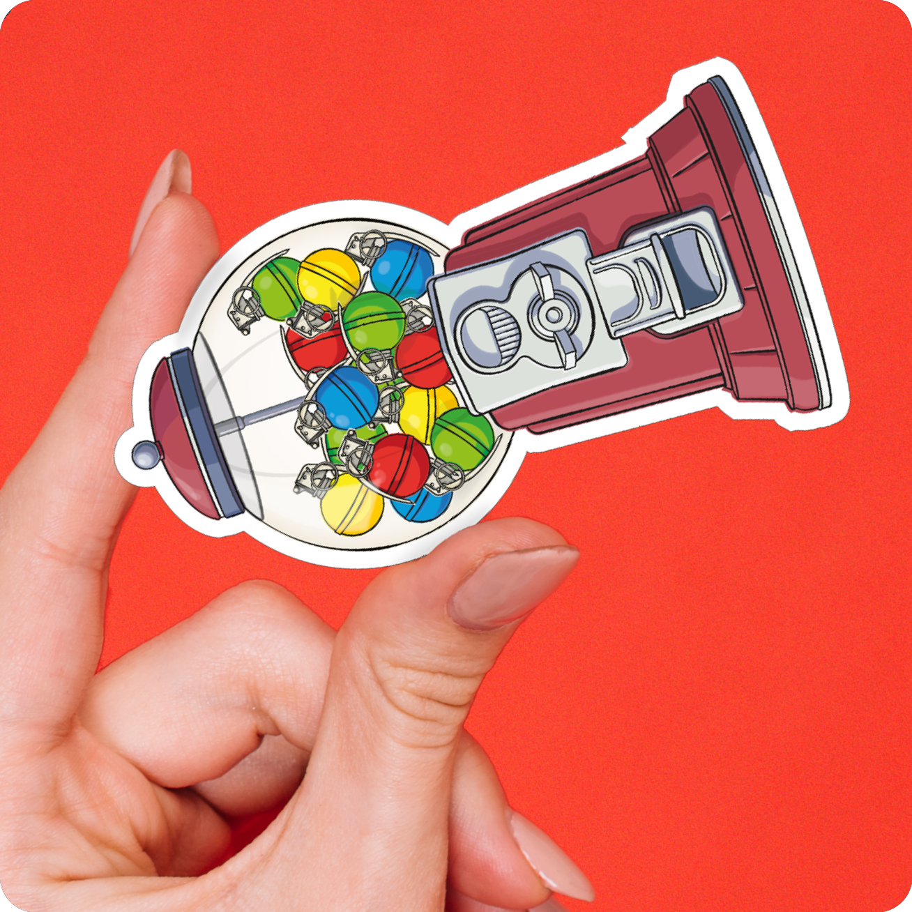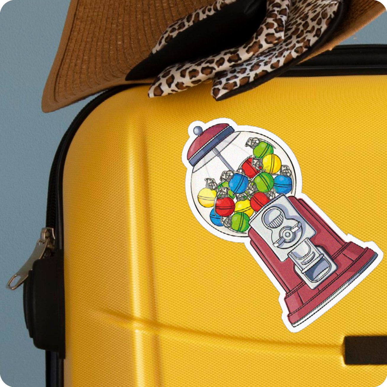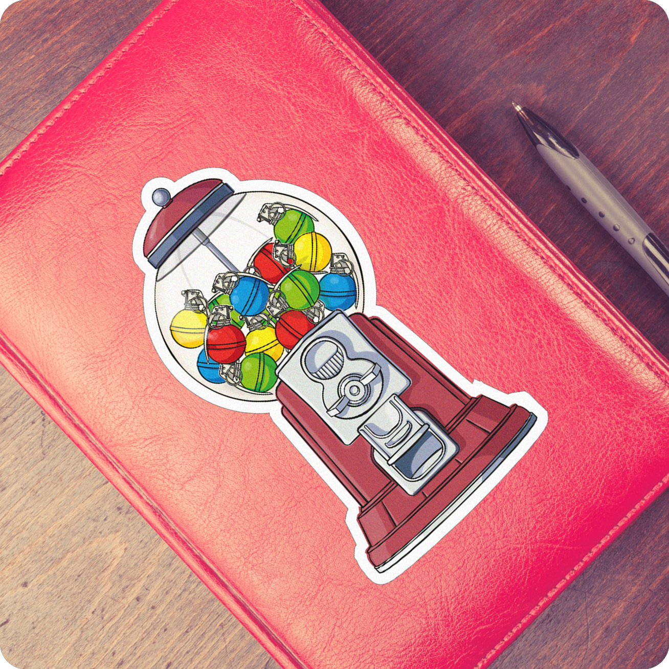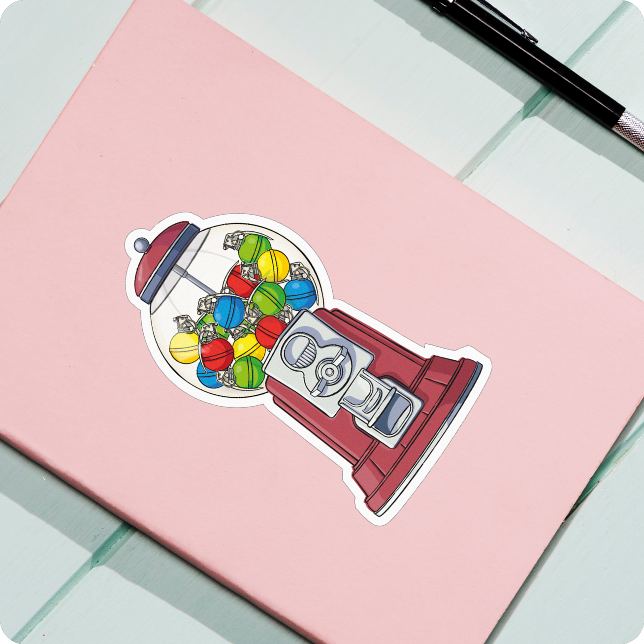 This cool troublegum machine sticker with it’s witty visual pun will definitely add some extra stand-out to any belonging; ideal for phone cases, skateboards, laptops, notebooks... the list goes ever on! Whether you’re looking to add some bling to your own item or as a little gift for a friend... this is sure to make a bang!